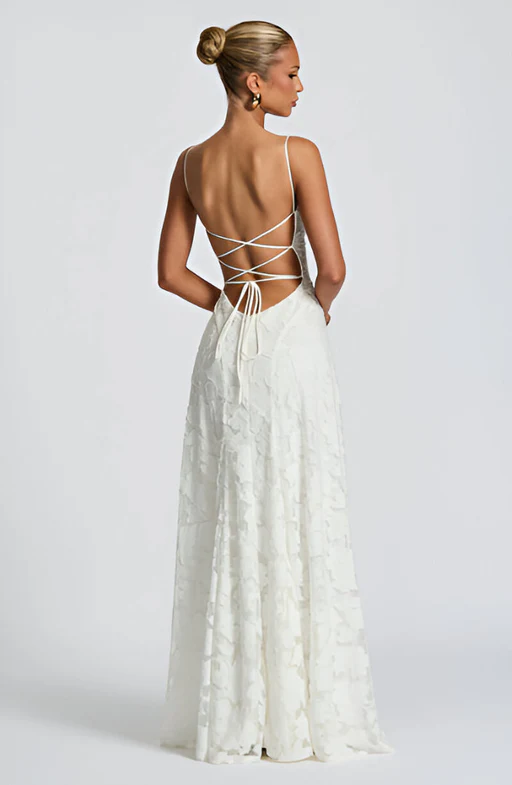 El vestido largo Francisca personifica la elegancia romántica en su máxima expresión: un corpiño de hermosa silueta, una delicada superposición de encaje y una falda fluida y elegante que se mueve con gracia a cada paso. Perfecto para galas, bodas de noche o cualquier ocasión donde se desee una belleza atemporal.