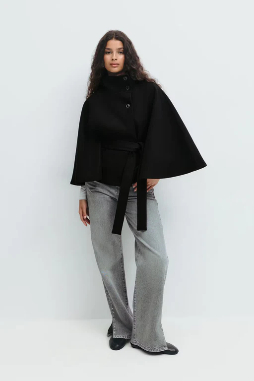 Lara™ | Abrigo tipo capa con cinturón y cuello alto